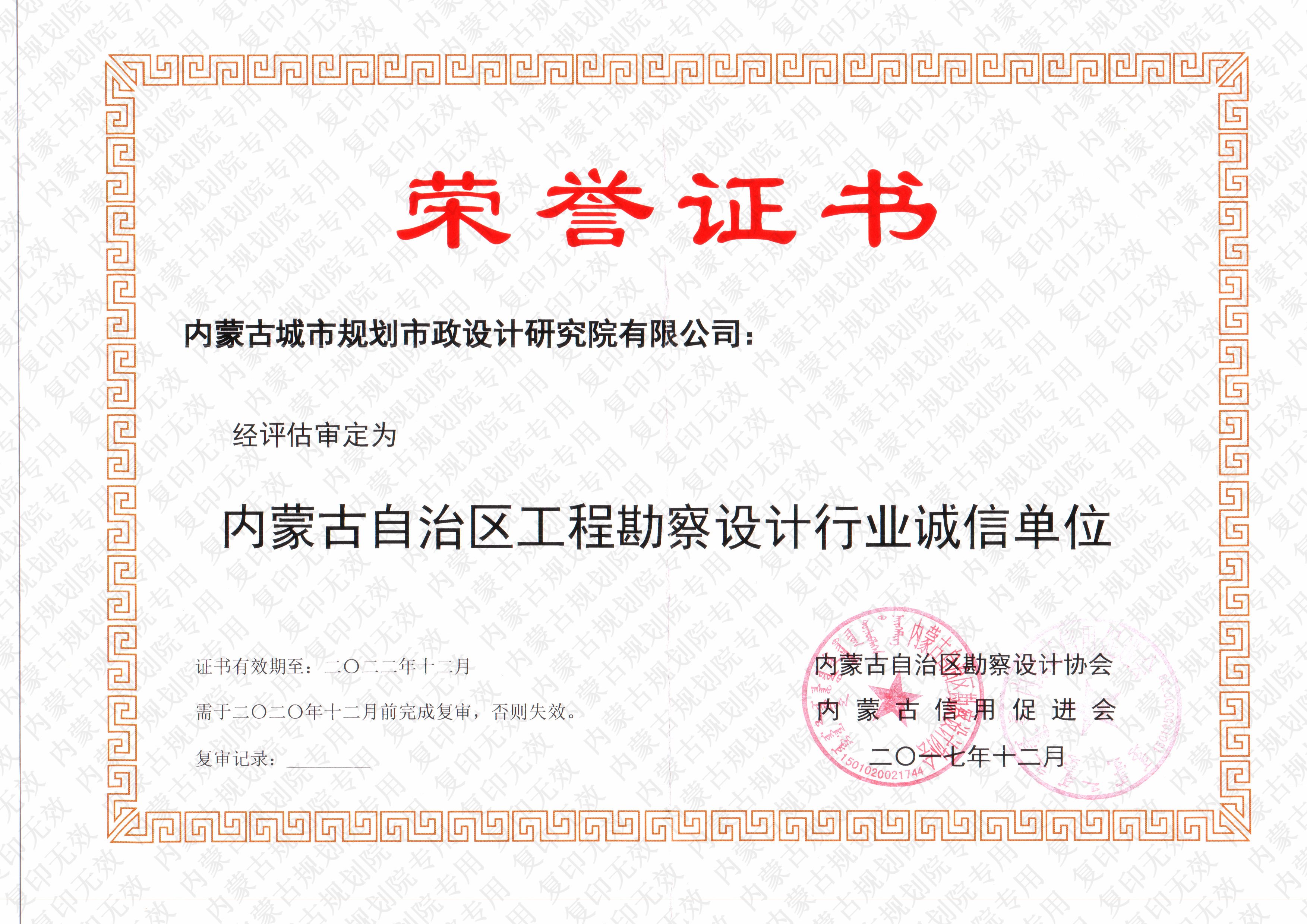 內(nèi)蒙古自治區(qū)工程勘察設(shè)計行業(yè)誠信單位