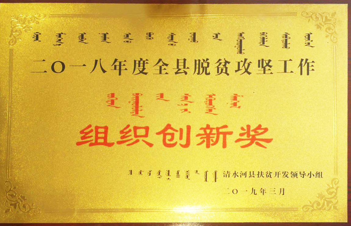 呼和浩特市清水河縣委 縣政府為我院頒發(fā) 社會事業(yè)愛心奉獻(xiàn)先進(jìn)集體及2018年度全縣脫貧攻堅組織創(chuàng)新獎