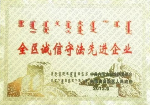 內(nèi)蒙古自治區(qū)誠信守法先進(jìn)企業(yè)