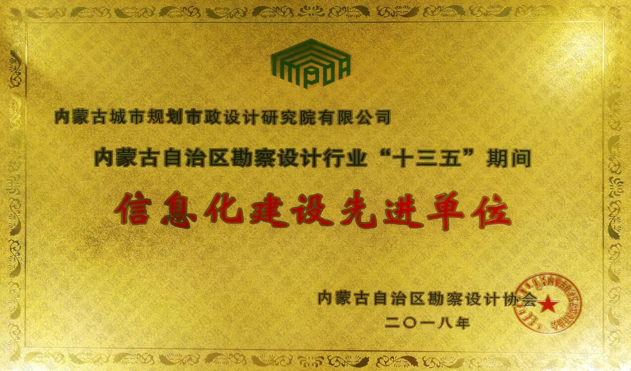 內(nèi)蒙古自治區(qū)勘察設(shè)計行業(yè)“十三五”期間信息化建設(shè)先進(jìn)單位