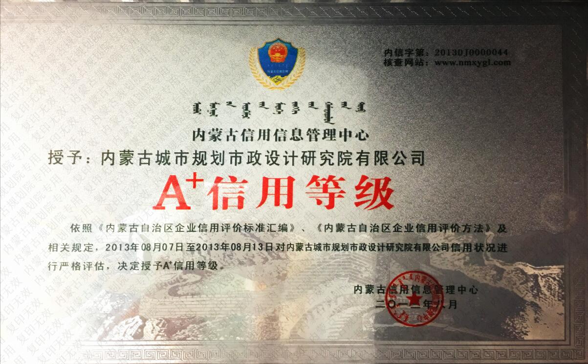 內(nèi)蒙古自治區(qū)城市規(guī)劃行業(yè)公信力單位